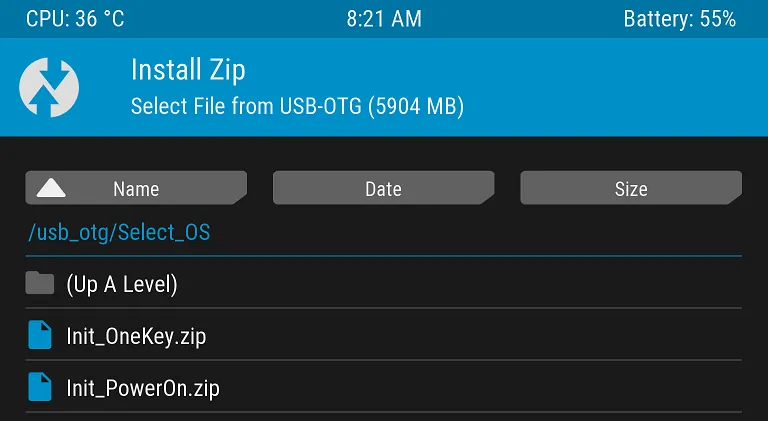 将回到图2画面,选择“(Up A Level)”,找到 Select_OS 文件夹,如果安装开机切换功能,请选择 Init_PowerOn.zip,如果安装一键切换功能,则选择 Init_OneKey.zip。