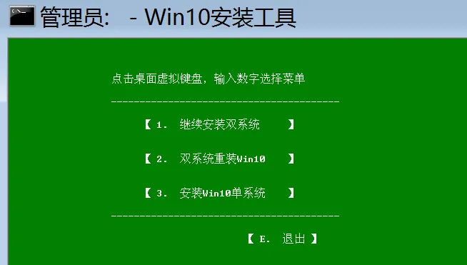 点一下绿色窗口中任何地方,输入虚拟键盘上的数字“1”,将开始安装Win 系统。