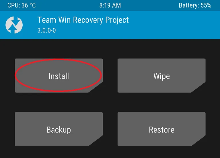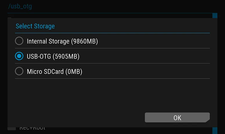 然后选择 USB-OTG。如果无法看到 U盘中内容,请更换 U盘,或退出恢复模式,进入 Miui 系统中,打开“系统更新”界面,点右上角的三个点,选择“重启到恢复模式”,重新进入。
