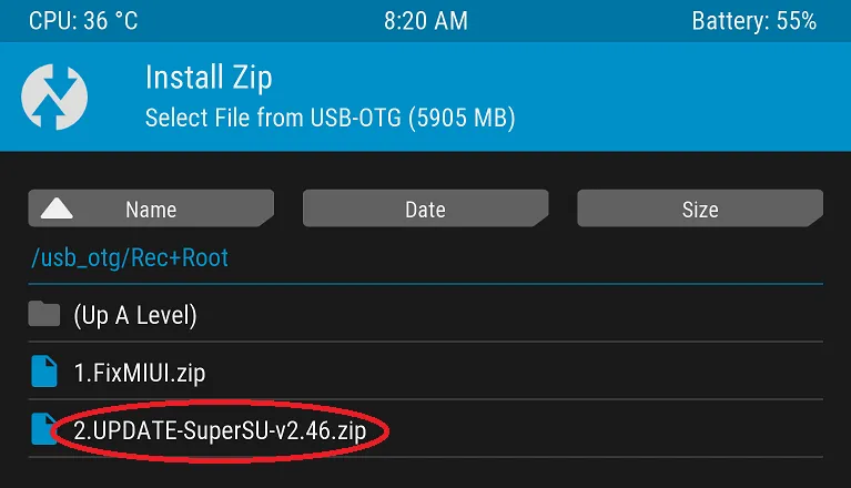 选择 “Rec+Root” 中的 2.UPDATE-SuperSU-v2.46.zip。
